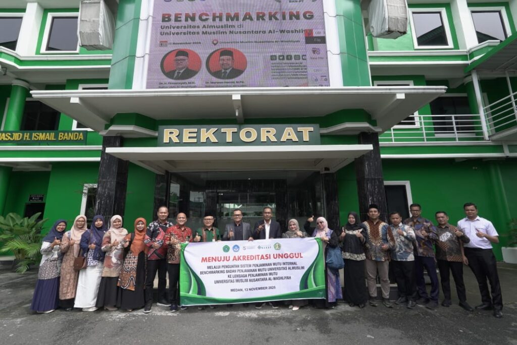 Dalam kunjungan ini, rombongan dari Umuslim disambut oleh Pimpinan dan tim dari LPM UMN Al Washliyah. Agenda utama yang dibahas adalah mengenai implementasi Sistem Penjaminan Mutu Internal (SPMI) dan Sistem Penjaminan Mutu Eksternal (SPME) yang diterapkan oleh LPM UMN Al Washliyah. Kegiatan Benchmarking SPMI ini bertujuan untuk mengidentifikasi praktik dan kinerja SPMI LPM UMN Al Washliyah yang telah unggul setelah UMN Al-Washliyah meraih akreditasi Unggul pada pada Bulan April Tahun 2025 yang lalu. “Akreditasi Unggul yang kami peroleh bukan berati kami lebih baik dari yang lain, namun pengalaman yang telah kita miliki mari sama-sama kita bagikan dengan berdiskusi”, Ungkap Kepala LPM UMN Al Washliyah, Dr. Juliandi Siregar, S.Pd., M.Si.