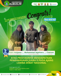 BIREUEN – Universitas Almuslim (Umuslim) Peusangan kembali menunjukkan komitmennya dalam pengembangan mahasiswa dengan mengirimkan tim debat untuk mengikuti ajang nasional. Mereka akan berpartisipasi dalam kompetisi Debat Mahasiswa Indonesia (KDMI) dan National University Debating Championship (NUDC) yang digelar di Universitas Jenderal Soedirman, Banyumas, Jawa Tengah. Perjalanan tim debat dari Umuslim dijadwalkan selama enam hari, mulai 20 hingga 25 Oktober 2025. Tim KDMI Umuslim terdiri dari Putri Mulyana dari Program Studi Hubungan Read more