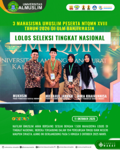 Banjarmasin, 11 Oktober 2025– Setelah melewati proses seleksi yang sangat ketat, tiga mahasiswa dari Universitas Almuslim berhasil menembus babak nasional dalam ajang Musabaqah Tilawatil Qur’an Nasional (MTQMN) ke- XVIII yang diadakan di Universitas Lambung Mangkurat, Banjarmasin, Kalimantan Selatan. Informasi ini disampaikan oleh Ustas M. Rizal MA, dosen pembimbing pengajian dari Universitas Almuslim Bireuen, yang saat ini berada di lokasi kegiatan. Ketiga mahasiswa unggulan dari Universitas Almuslim akan bersaing dengan sekitar Read more