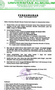 PENGUMUMAN Diberitahukan kepada mahasiswa baru Tahun 2014 yang belum menyerahkan kelengkapan Ijazah dan SKHU pada saat Daftar Ulang Harap Menyerahkan kepada Biro Akademik atau Program Studi Masing-masing, paling lambat tanggal 10 Oktober 2014 Demikianlah pengumuman ini di untuk ditaati bersama. dto Biro Akademik