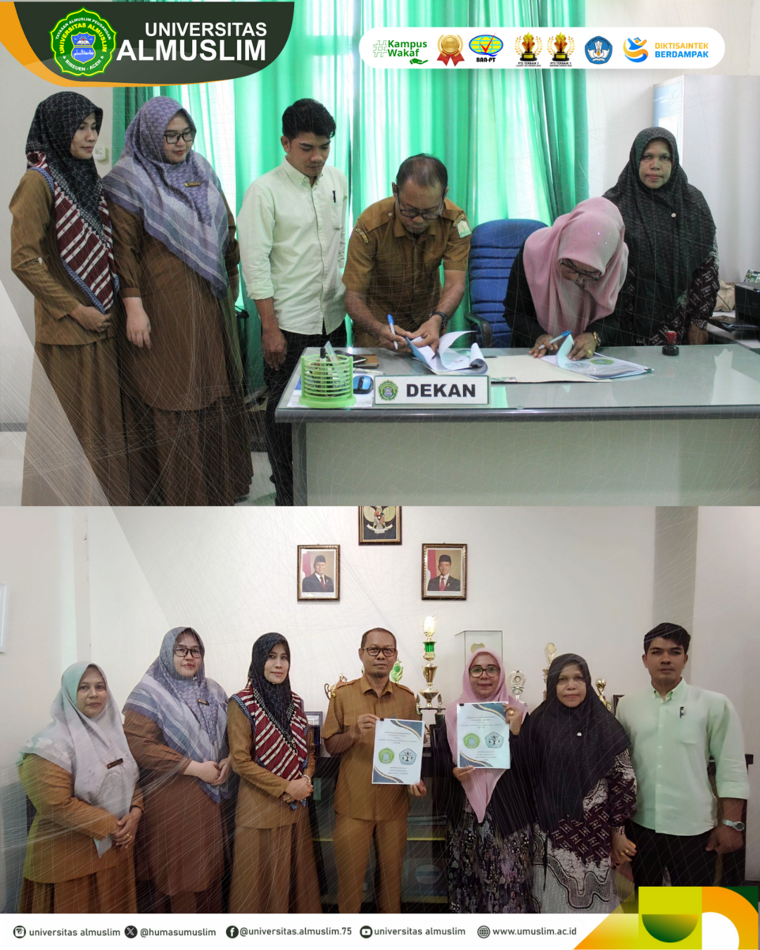 Bireuen, 27 Mei 2025 — Fakultas Pertanian Universitas Almuslim Bireuen, yang dipimpin oleh Dr. Elfiana, SP, M.Si, telah menandatangani Memorandum of Agreement (MoA) dengan Kepala SMK Negeri 1 Jeunib, Feri Irawan, S.Si, M.Pd. Penandatanganan dilakukan di ruang kerja Dekan Fakultas Pertanian dan merupakan bagian dari upaya kolaborasi strategis dalam rangka meningkatkan mutu pendidikan dan pengembangan sumber daya manusia di wilayah Kabupaten Bireuen.