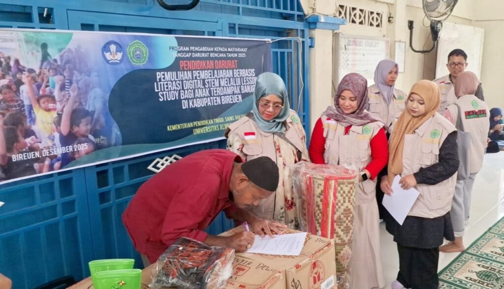 Bireuen – Tim Pengabdian kepada Masyarakat (PkM) Pendidikan Darurat Tanggap Bencana Hidrometeorologi dari Fakultas Keguruan dan Ilmu Pendidikan (FKIP) Universitas Almuslim kembali menunjukkan komitmennya dalam mendampingi masyarakat terdampak bencana. Kegiatan yang berlangsung di Desa Gampong Raya Dagang ini dipimpin langsung oleh Ketua Tim, Dr. Silvi Listia Dewi, M.Pd., bersama jajaran dosen, mahasiswa, serta praktisi lapangan.