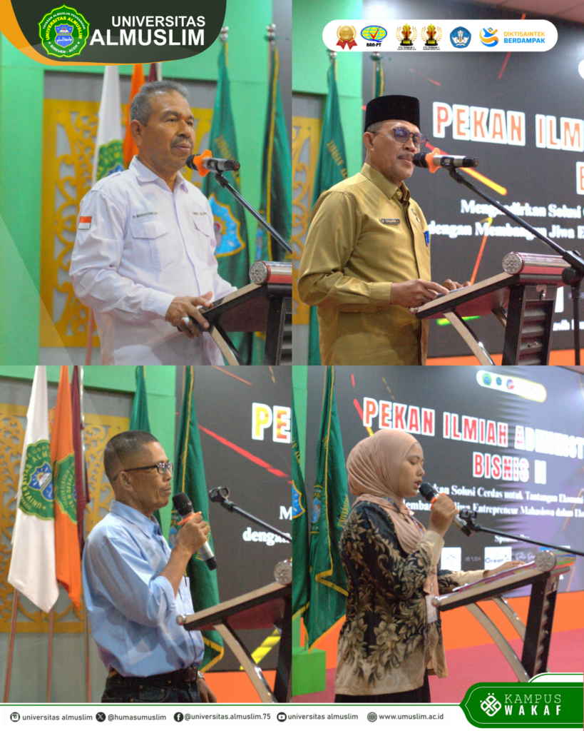 Bireuen, 22 September 2025 – Himpunan Mahasiswa Administrasi Bisnis (HIMABIS) Universitas Almuslim (Umuslim) kembali menunjukkan komitmennya dalam pengembangan kualitas mahasiswa melalui penyelenggaraan Seminar Nasional Pekan Ilmiah Administrasi Bisnis (PIAB) II yang berlangsung di Gedung MA, Kampus Utama Universitas Almuslim. Dengan mengangkat tema “Menciptakan Solusi Pintar Menghadapi Tantangan Ekonomi Global melalui Pengembangan Jiwa Wirausaha Mahasiswa dalam Era Digital,” kegiatan ini dihadiri oleh mahasiswa, akademisi, pejabat pemerintah, serta pelajar dari berbagai tingkat pendidikan.