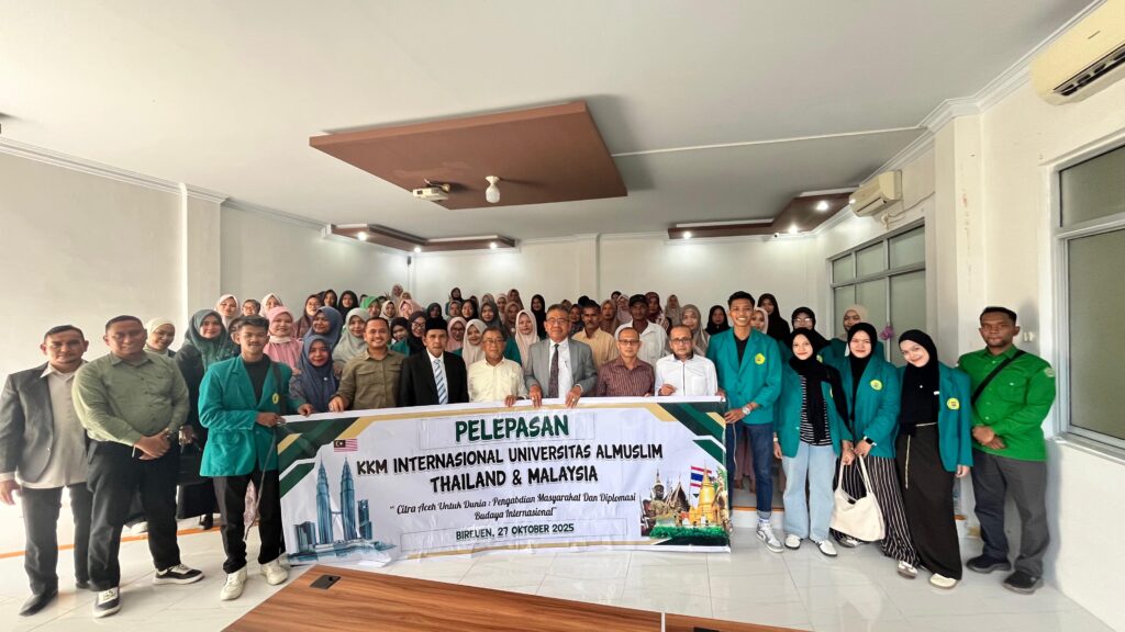 Bireuen_ Rektor Universitas Almuslim (Umuslim) melakukan pelepasan mahasiswa untuk Melaksanakan Kuliah Kerja Mahasiswa (KKM) ke Malaysia dan Thailand. Sebanyak 30 Mahasiswa yang terdiri dari berbagai macam Program Studi yang ada di Universitas Almuslim. (27/10)