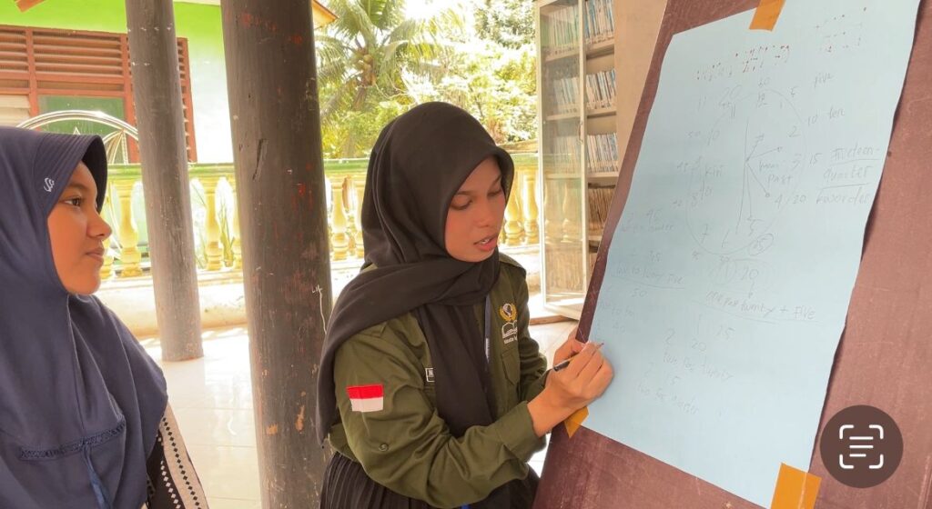 Bireuen – Mahasiswa Kuliah Kerja Mahasiswa (KKM) Universitas Almuslim melaksanakan program kerja mandiri berupa pembelajaran pengenalan jam analog dalam bahasa Inggris kepada anak-anak di Desa Raya Tambo, Kecamatan Peusangan, Kabupaten Bireuen. Kegiatan edukatif ini merupakan bagian dari upaya mahasiswa dalam mendukung pemulihan proses pembelajaran anak-anak pascabencana banjir yang sempat mengganggu aktivitas pendidikan di wilayah tersebut.