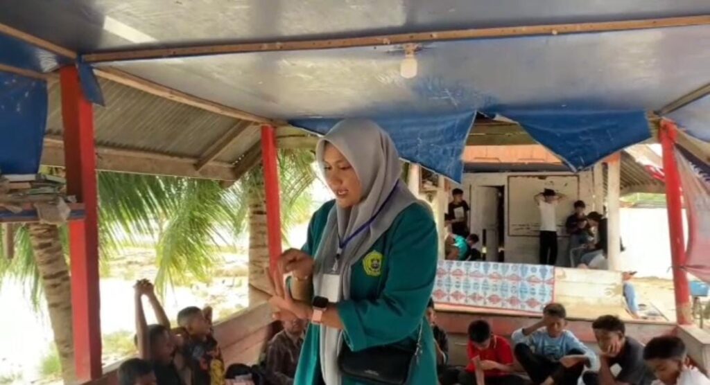 Dokumentasi foto mahasiswa matematika gelar kelas ceria di Alue Kuta Jangka.