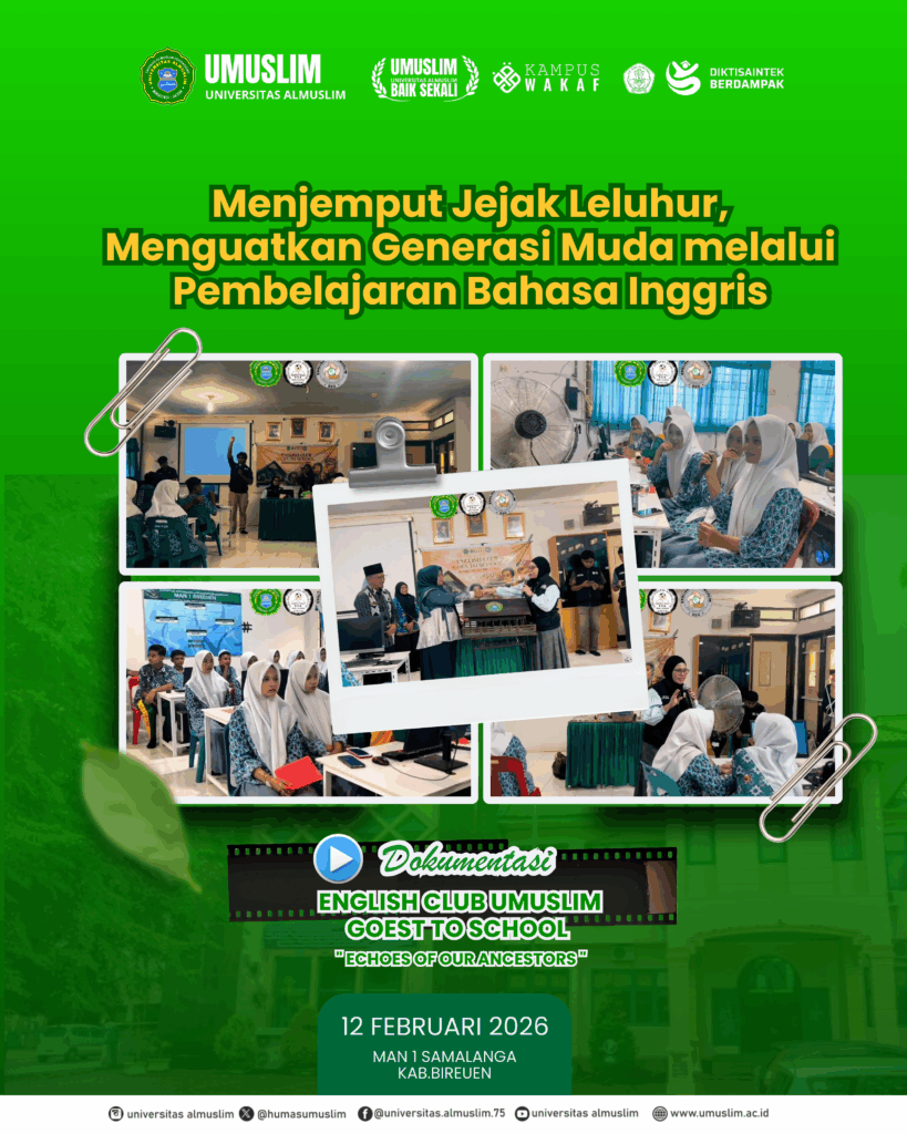 English Club merupakan Unit Kegiatan Mahasiswa (UKM) yang berada di bawah koordinasi Wakil Rektor III Bidang Kemahasiswaan, Alumni, dan Kerja Sama Universitas Almuslim. Kegiatan ini didampingi oleh Pembina English Club, Ibu Misnar, M.A., serta mendapat dukungan penuh dari Fakultas Keguruan dan Ilmu Pendidikan Universitas Almuslim sebagai bentuk penguatan kolaborasi akademik antara perguruan tinggi dan sekolah.