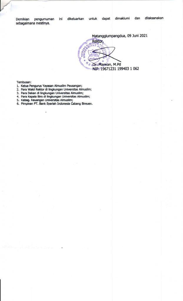Demikian pengumuman ini disampaikan semoga dimaklumi dan dilaksankaan