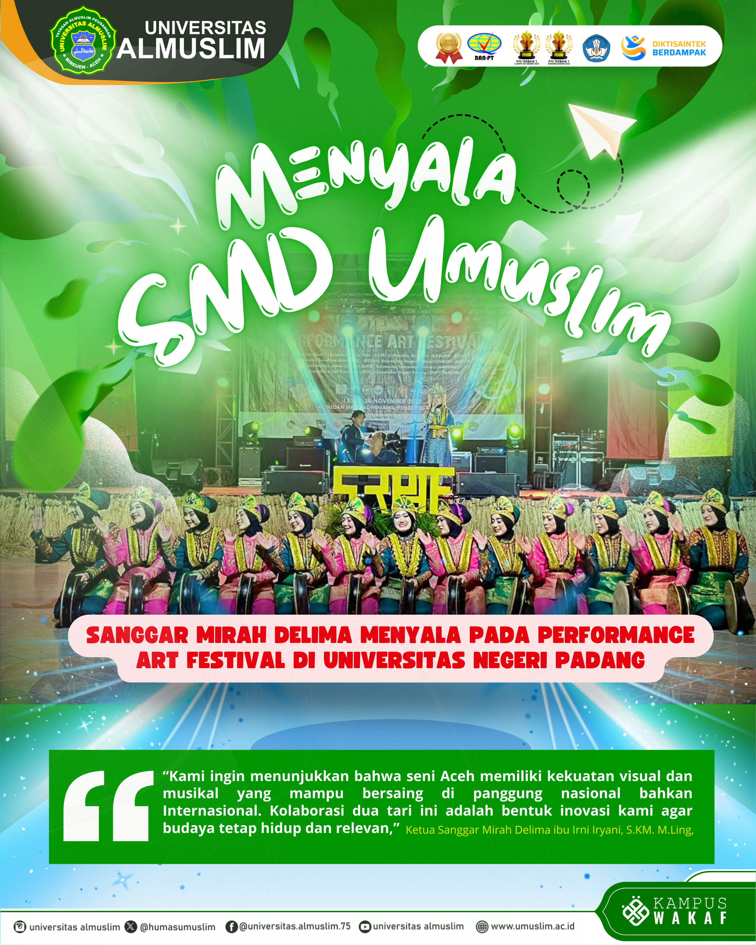 Dengan mengangkat kombinasi Rapai Geleng Inong dan Ratoh Jaro, Sanggar Mirah Delima Universitas Almuslim berhasil menghidupkan kembali semangat kebudayaan Aceh pada panggung UNP—sebuah penampilan yang benar-benar menyala dalam makna sesungguhnya.#Humas_Umuslim