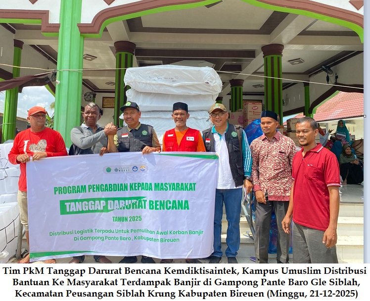 Bireuen_ Tim LPPM Universitas Almuslim (Umuslim), melalui program Kementerian Pendidikan Tinggi, Sains, dan Teknologi (Kemdiktisaintek) selama tiga hari (Minggu-Selasa, 21-23 Des 2025 lakukan aksi pengabdian kepada Masyarakat (PKM) Tanggap Darurat ke desa-desa berdampak bencana hidrometeorologi (banjir longsor) di kecamatan Peusangan Siblah Krueng dan Jangka.