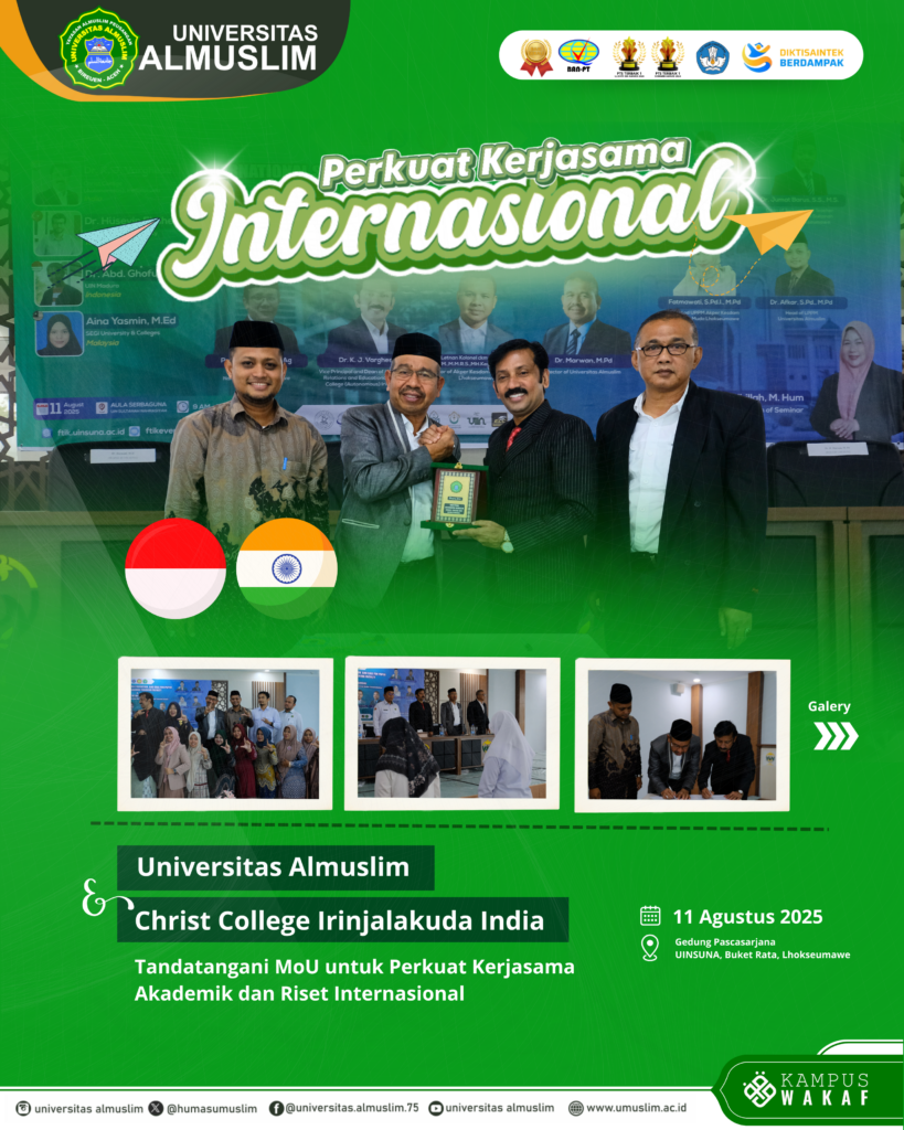 Acara ini tidak hanya menjadi forum diskusi tentang inovasi pendidikan dan keberlanjutan, tetapi juga menjadi momentum bersejarah dengan penandatanganan beberapa naskah kerjasama, Memorandum of Understanding (MoU), Memorandum of Agreement (MoA) dan Implementation Agreement (IA) antara Universitas Almuslim dan Christ College Irinjalakuda dari India.